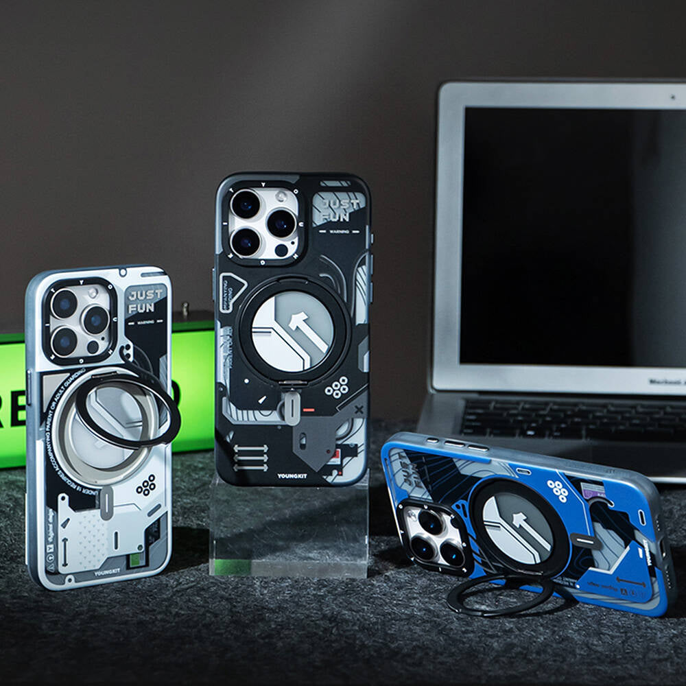 iPhone 16 Pro Max Kılıf Magsafe Şarj Özellikli Youngkit 360° Standlı Starship Serisi Kapak