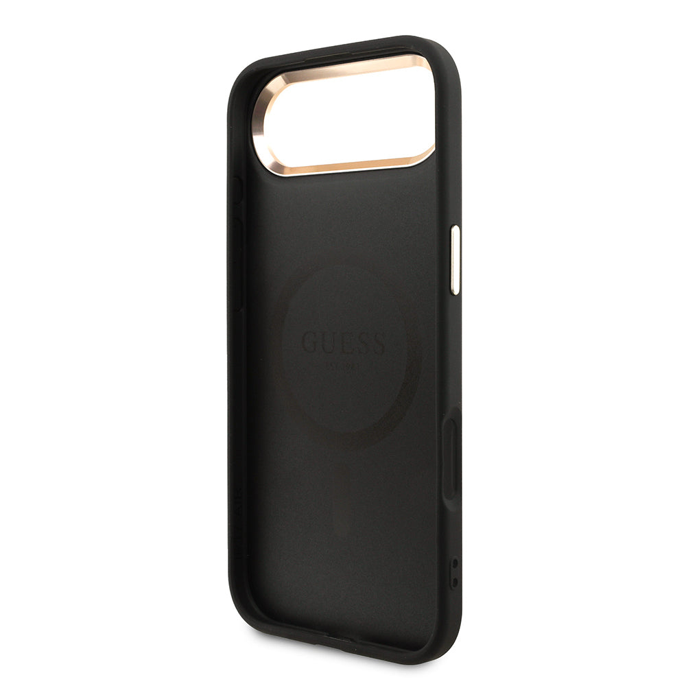 iPhone 17 Air Kılıf Guess Orjinal Lisanslı M-safe Şarj Özellikli Gold Metal Kamera Çerçeveli Taşlı Üçgen Logo 4G Desenli Kapak