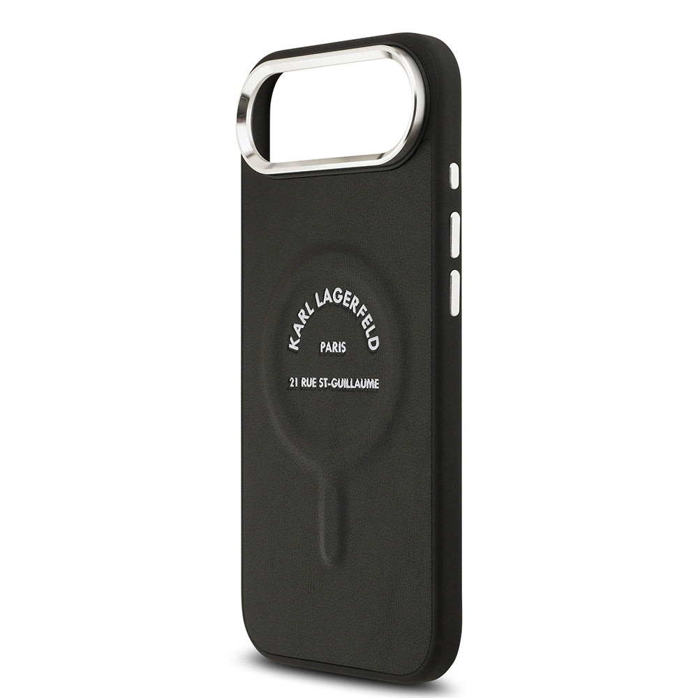 Apple iPhone 17 Air Kılıf Karl Lagerfeld Orjinal Lisanslı M-safe Şarj Özellikli Metal Kamera ve Buton Tasarımlı Paris RSG PU Deri Kapak Siyah
