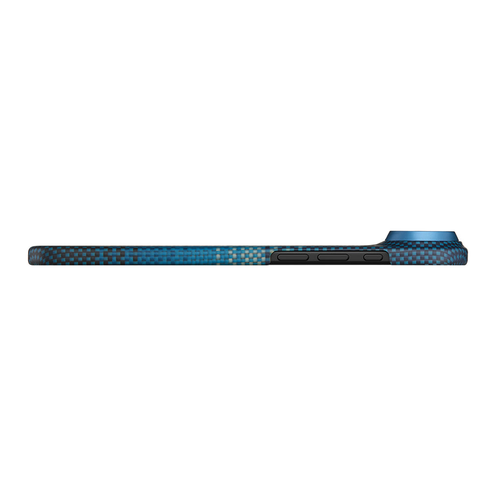 Apple iPhone 17 Air Kılıf M-safe Şarj Özellikli Aramid Fiber Pitaka Tactile Woven Sunset-Moonrise Serisi Kapak Mavi