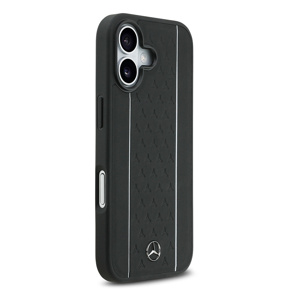 Apple iPhone 17 Kılıf Mercedes Benz Orjinal Lisanslı M-safe Şarj Özellikli Şeritli Yıldız Desenli Metal Logolu Deri Kapak Siyah