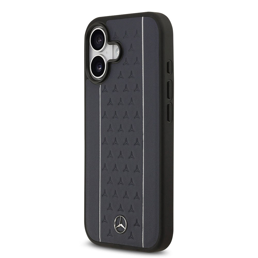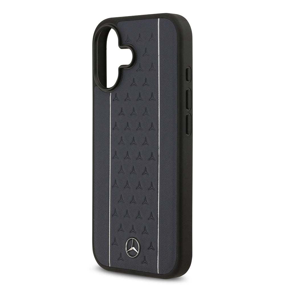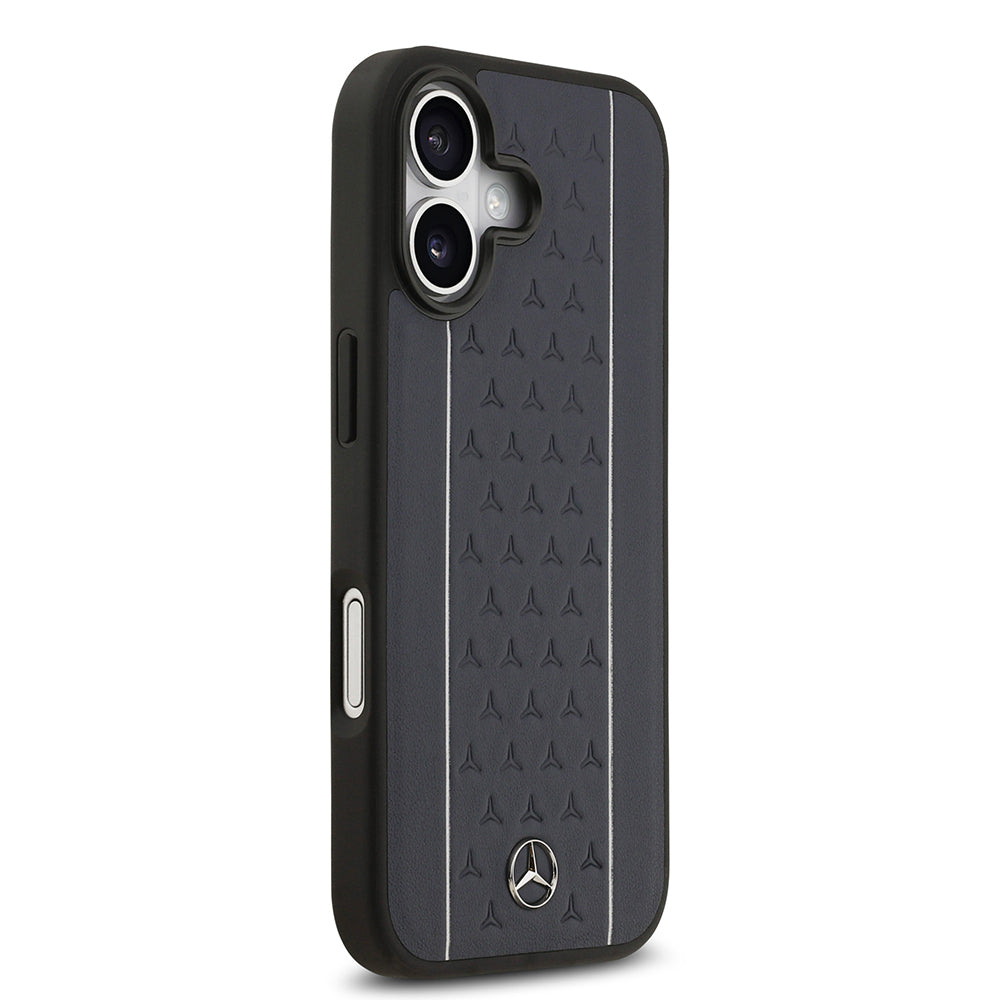 Apple iPhone 17 Kılıf Mercedes Benz Orjinal Lisanslı M-safe Şarj Özellikli Şeritli Yıldız Desenli Metal Logolu Deri Kapak Lacivert