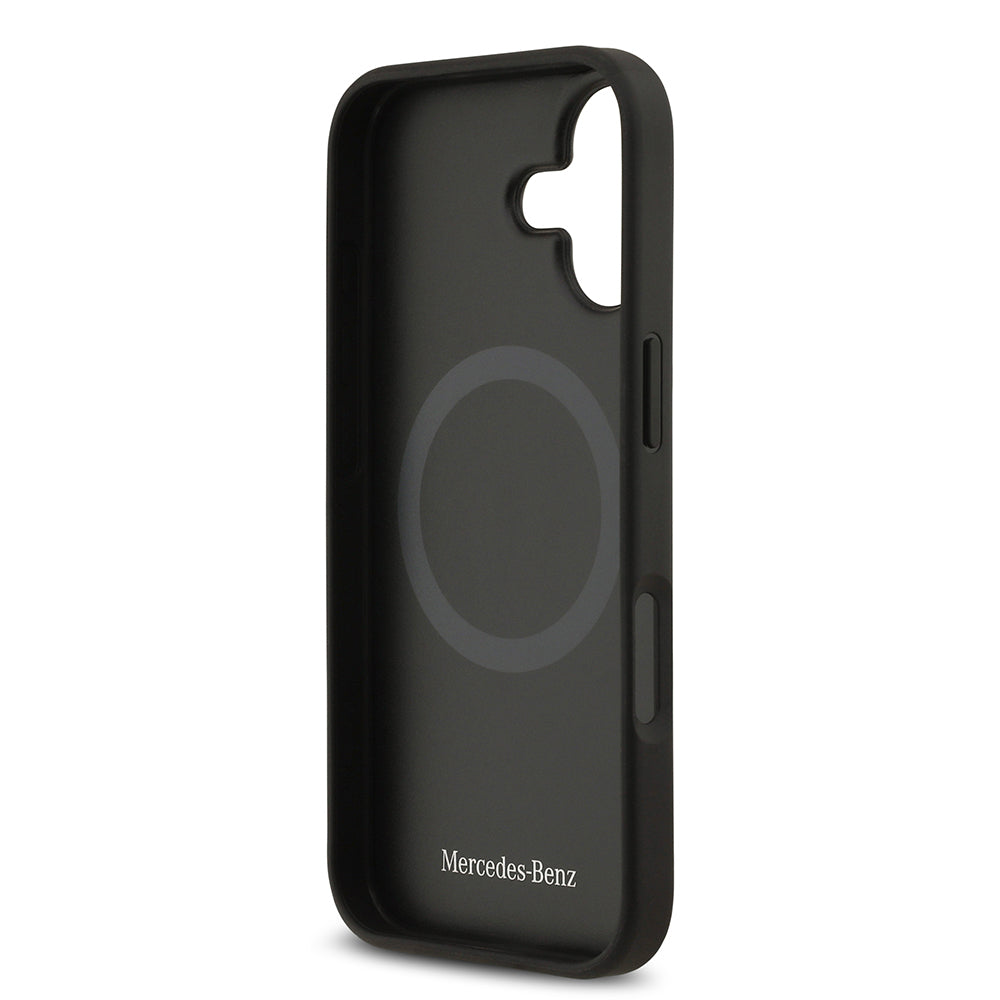 iPhone 17 Kılıf Mercedes Benz Orjinal Lisanslı M-safe Şarj Özellikli Şeritli Yıldız Desenli Metal Logolu Deri Kapak