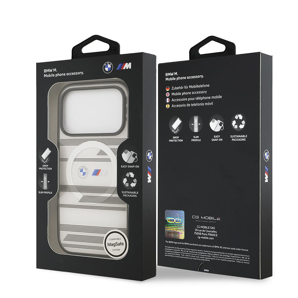 iPhone 17 Pro Kılıf BMW Orjinal Lisanslı M-safe Şarj Özellikli Metal Kamera Butonlu Yatay Şeritli M Dizayn Kapak