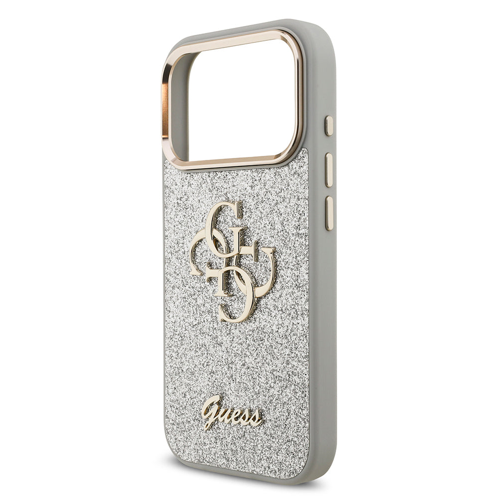 iPhone 17 Pro Kılıf Guess Orjinal Lisanslı 4G Büyük Metal Kamera Çerçeveli ve Logolu Glitter Kapak