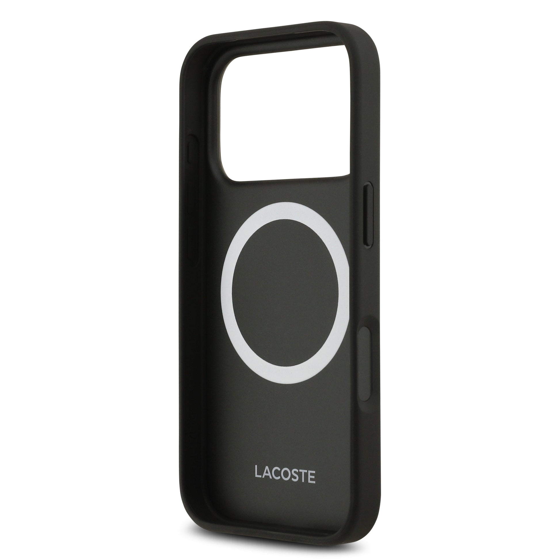 Apple iPhone 17 Pro Kılıf Lacoste Orjinal Lisanslı M-safe Şarj Özellikli PU Deri Tasarımlı Kartlıklı Karışık Monogram Desenli Kapak Siyah