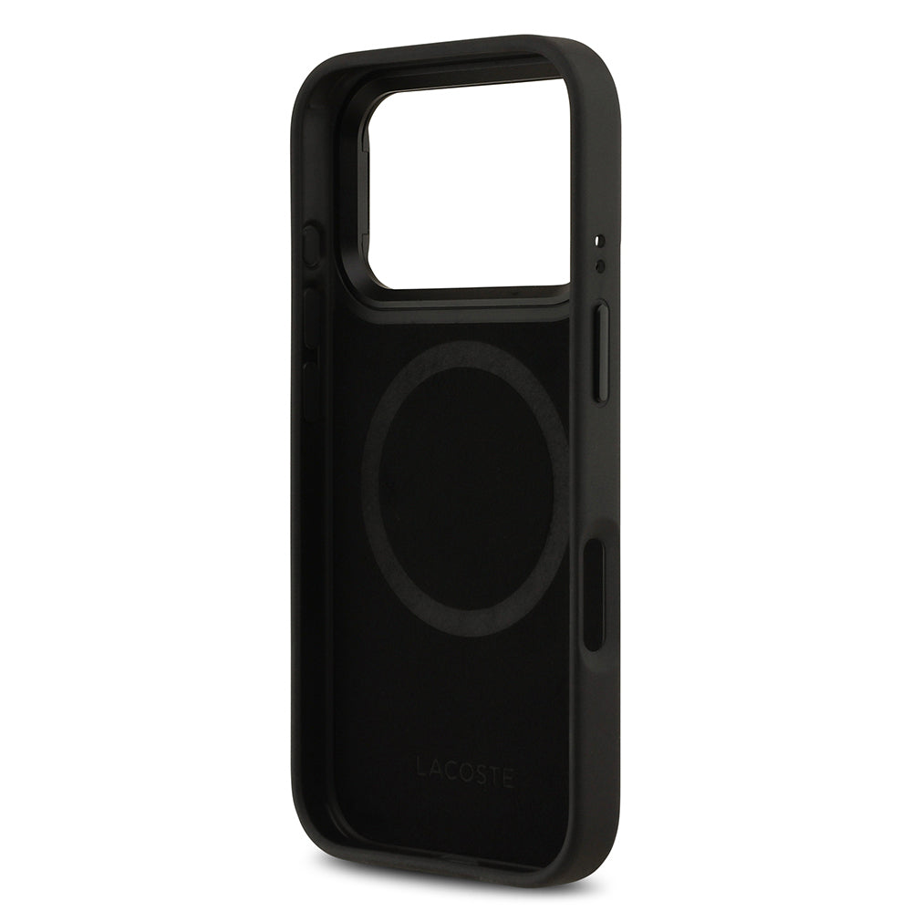 iPhone 17 Pro Kılıf Lacoste Orjinal Lisanslı M-safe Şarj Özellikli Standlı PU Deri Karışık Monogram Desenli Kapak