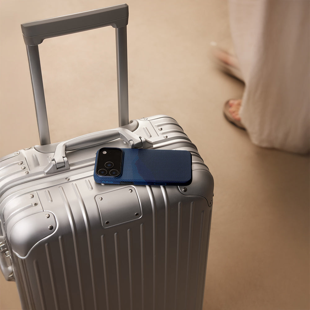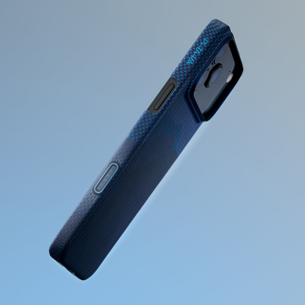 Apple iPhone 17 Pro Kılıf M-safe Şarj Özellikli Aramid Fiber Pitaka Tactile Woven Starpeak Serisi Over The Horizon Kapak Mavi