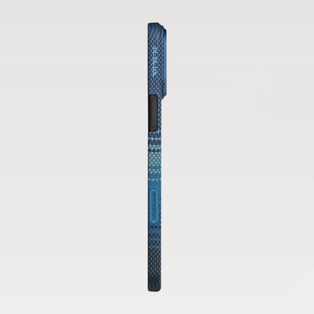 Apple iPhone 17 Pro Kılıf M-safe Şarj Özellikli Aramid Fiber Pitaka Tactile Woven Sunset-Moonrise Serisi Kapak Mavi