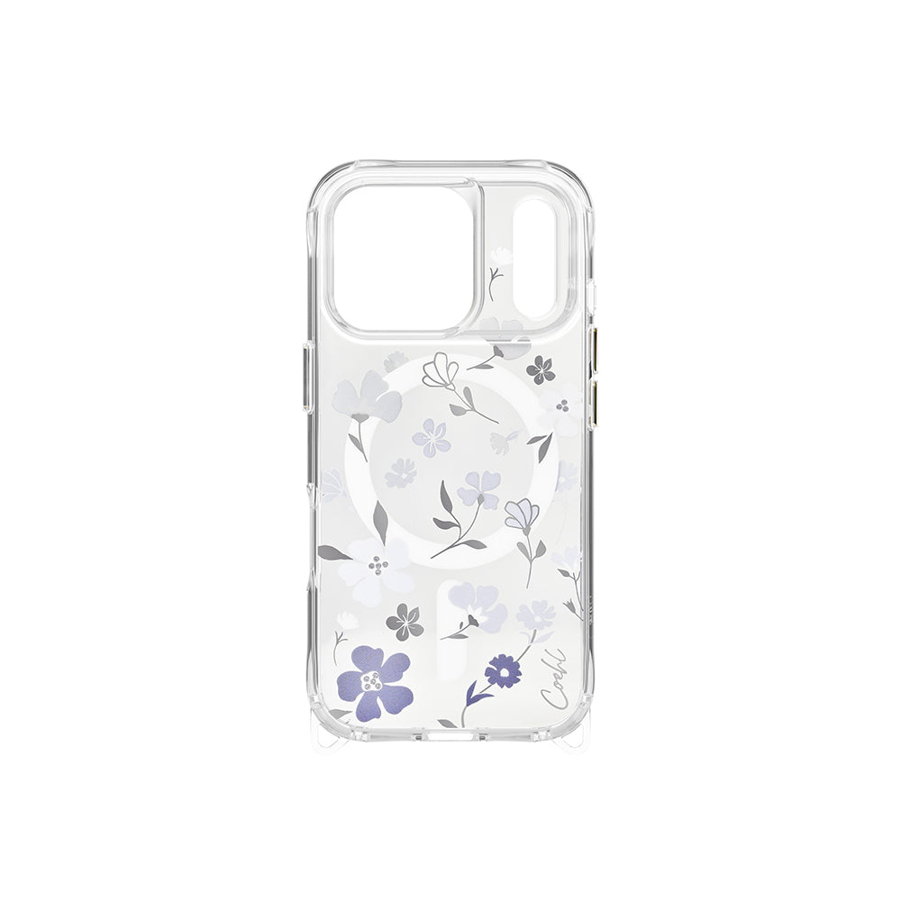 Apple iPhone 17 Pro Kılıf M-safe Şarj Özellikli Şeffaf Arka Yüzey Çiçekli Coehl Amara Kapak Lila