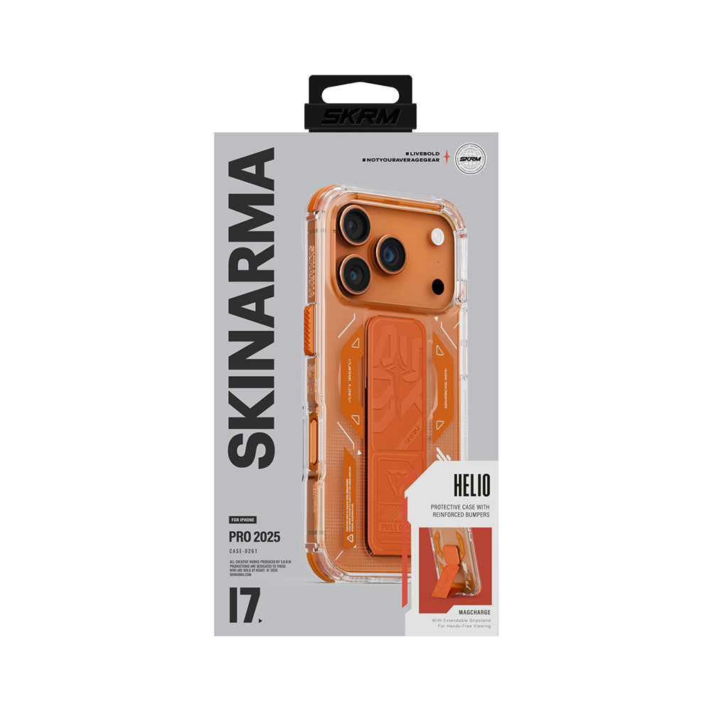 iPhone 17 Pro Kılıf M-safe Şarj Özellikli Teknoloji Desenli Skinarma Helio Mag Charge Standlı Kapak