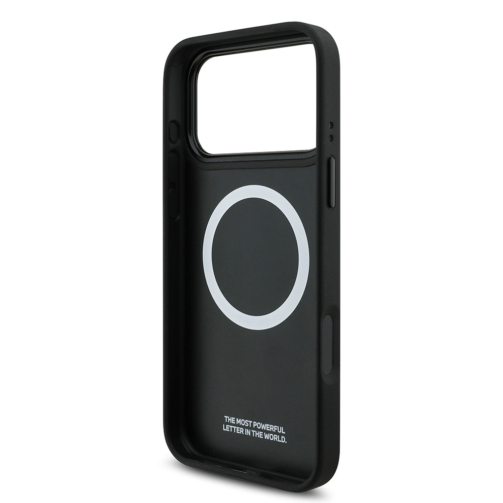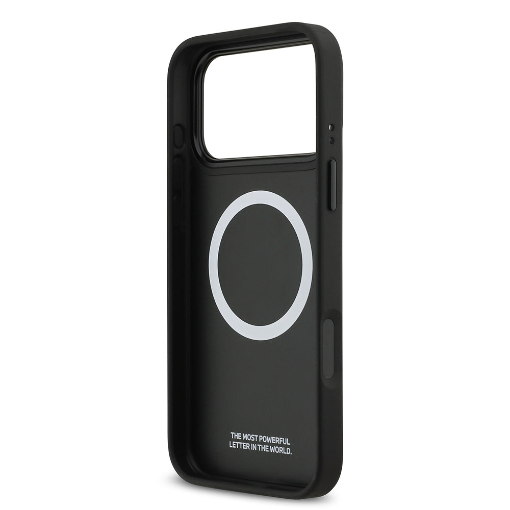 iPhone 17 Pro Max Kılıf BMW Orjinal Lisanslı M-safe Şarj Özellikli M Logolu Üç Şeritli Delikli Deri Kapak
