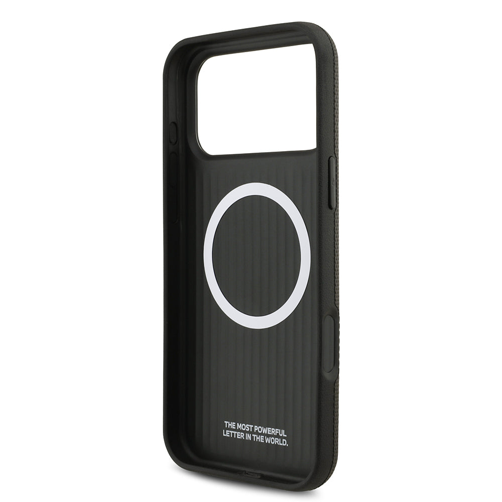 iPhone 17 Pro Max Kılıf BMW Orjinal Lisanslı M-safe Şarj Özellikli Metal Logolu Delikli M Dizayn Deri Kapak