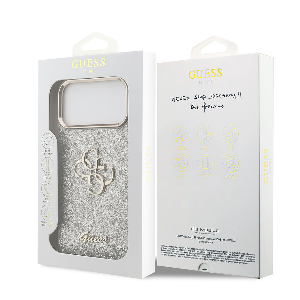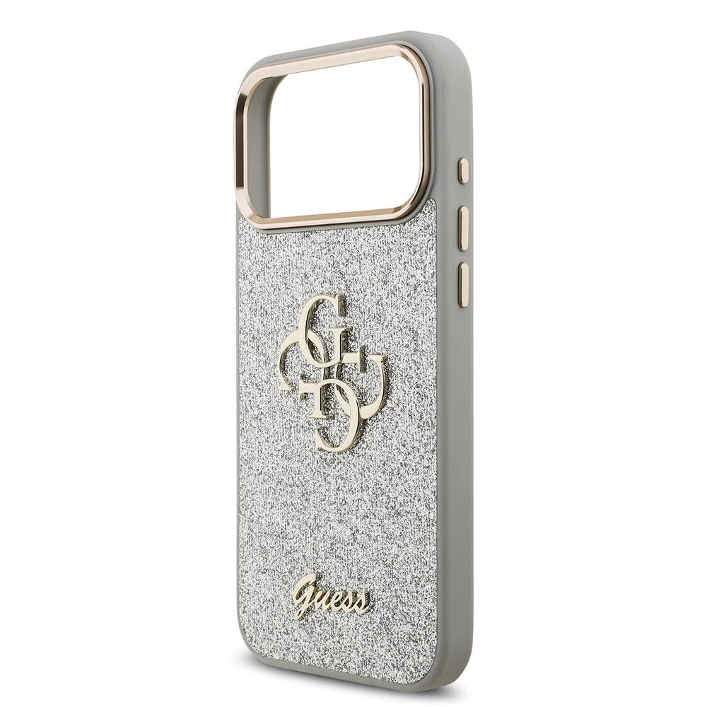 iPhone 17 Pro Max Kılıf Guess Orjinal Lisanslı 4G Büyük Metal Kamera Çerçeveli ve Logolu Glitter Kapak
