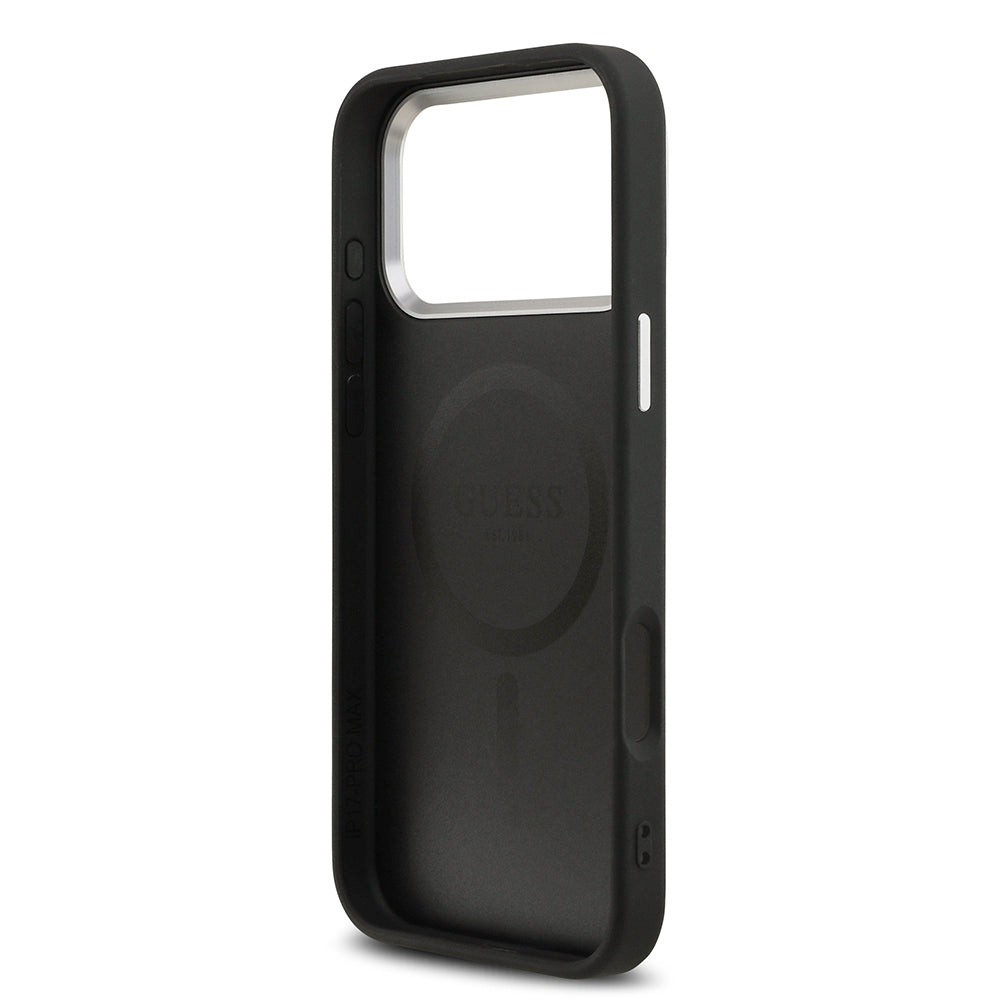 iPhone 17 Pro Max Kılıf Guess Orjinal Lisanslı M-safe Şarj Özellikli PU Deri Metal Kamera Çerçeveli Üçgen Logolu Kapak