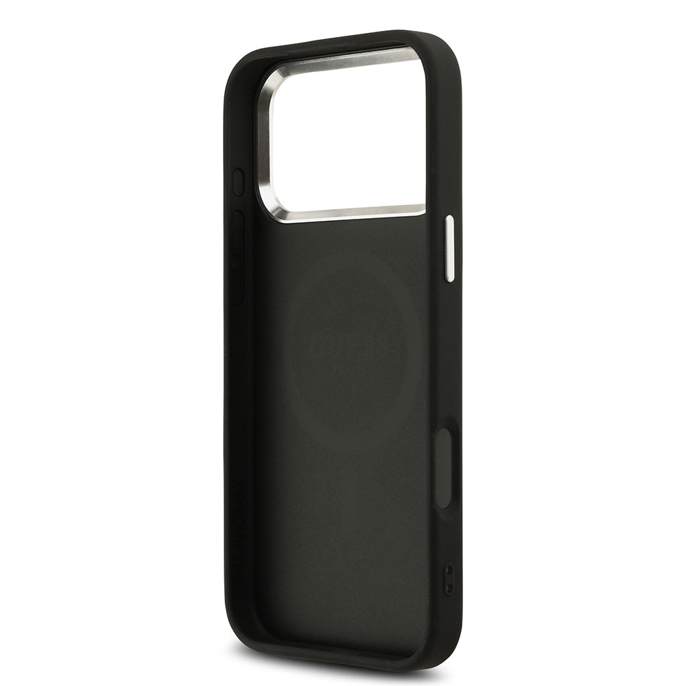 iPhone 17 Pro Max Kılıf Guess Orjinal Lisanslı M-safe Şarj Özellikli Sıcak Baskılı Klasik Yazı Logolu PU Deri Peony Kapak
