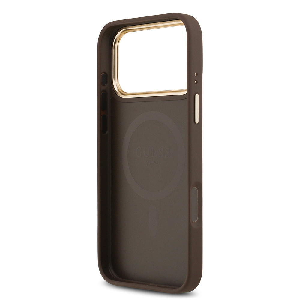 iPhone 17 Pro Max Kılıf Guess Orjinal Lisanslı M-safe Şarj Özellikli Sıcak Baskılı Yazı Logolu PU Deri Peony Kapak