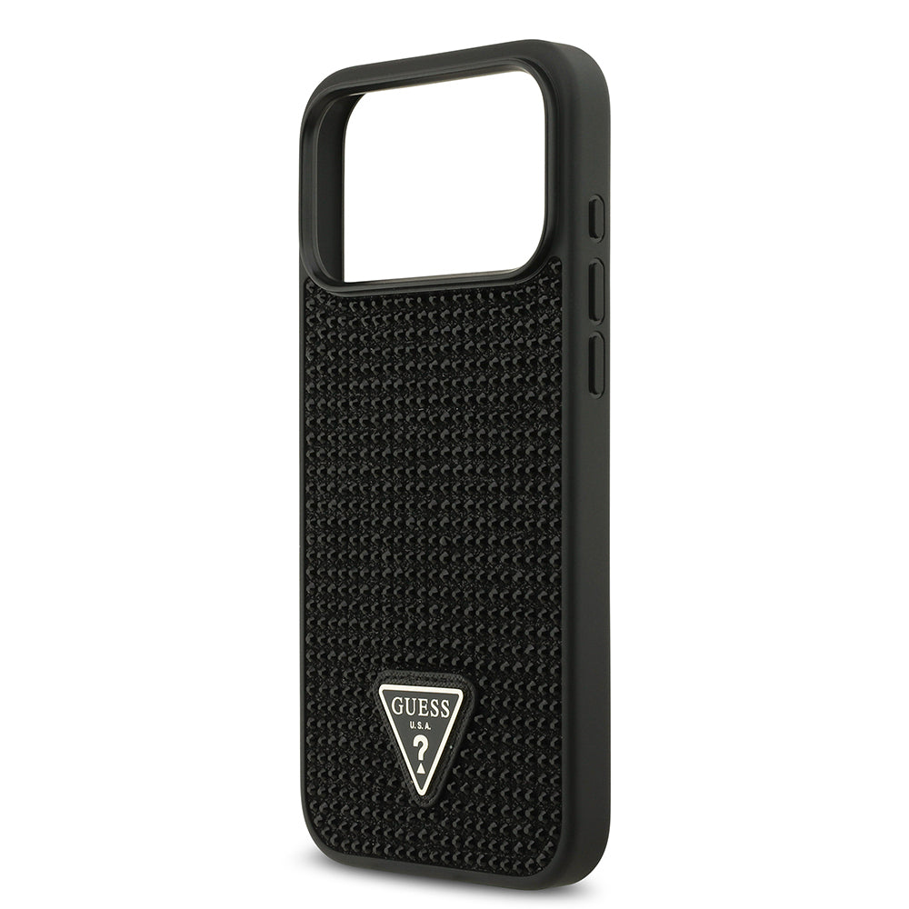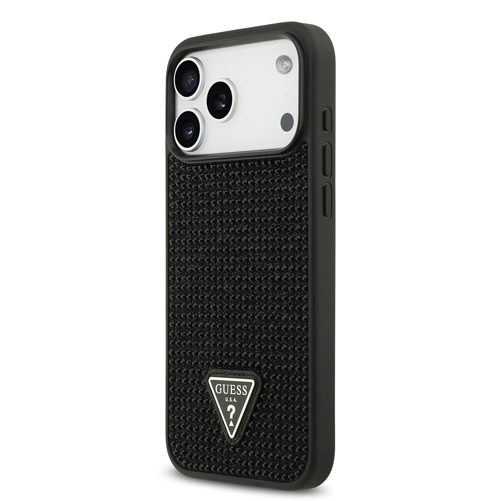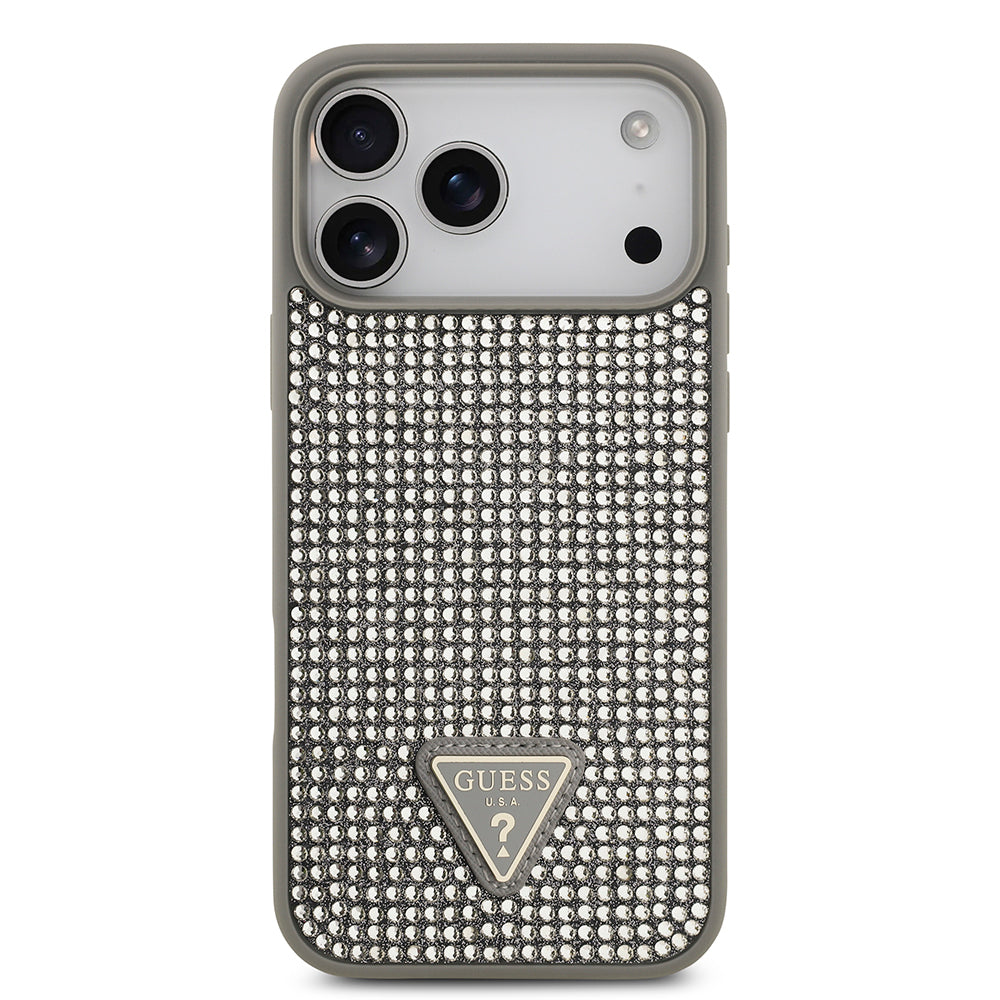 iPhone 17 Pro Max Kılıf Guess Orjinal Lisanslı Taşlı Arka Yüzey Üçgen Logolu Kapak