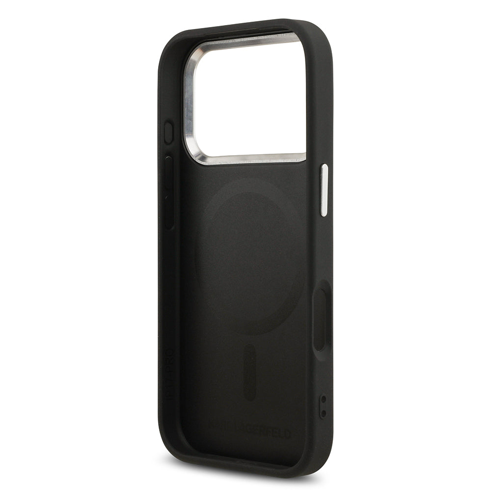 Apple iPhone 17 Pro Max Kılıf Karl Lagerfeld Orjinal Lisanslı M-safe Şarj Özellikli Metal Kamera ve Buton Tasarımlı Choupette PU Deri Kapak Siyah