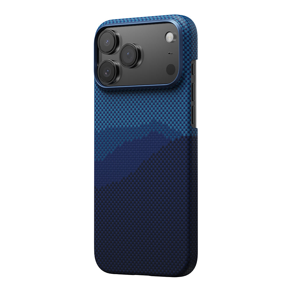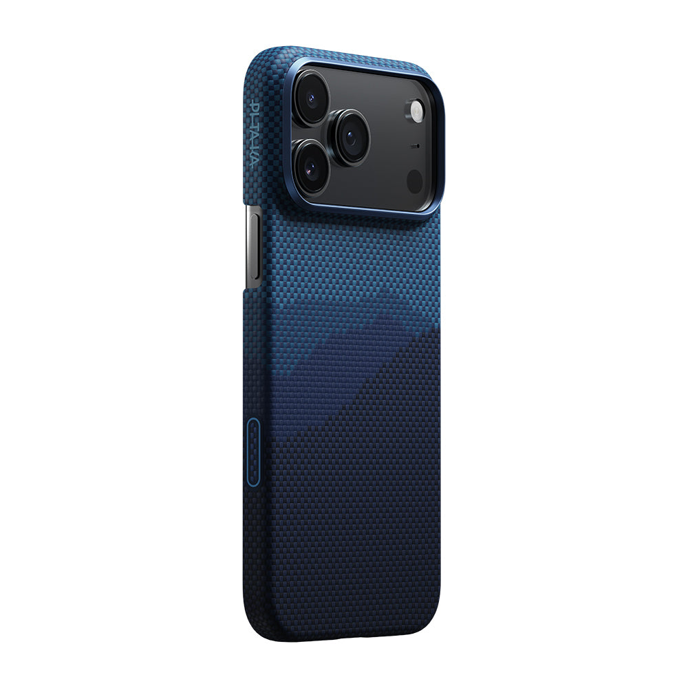 Apple iPhone 17 Pro Max Kılıf M-safe Şarj Özellikli Aramid Fiber Pitaka Tactile Woven Starpeak Serisi Over The Horizon Kapak Mavi