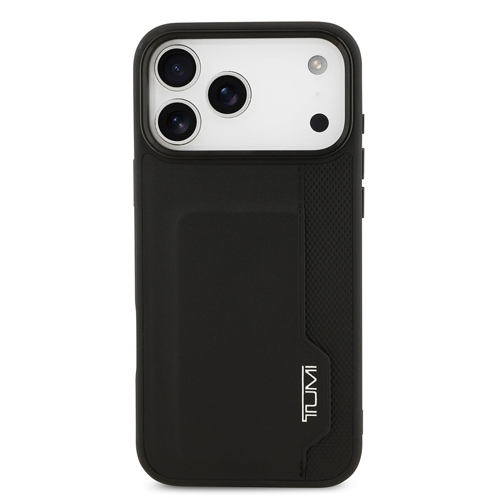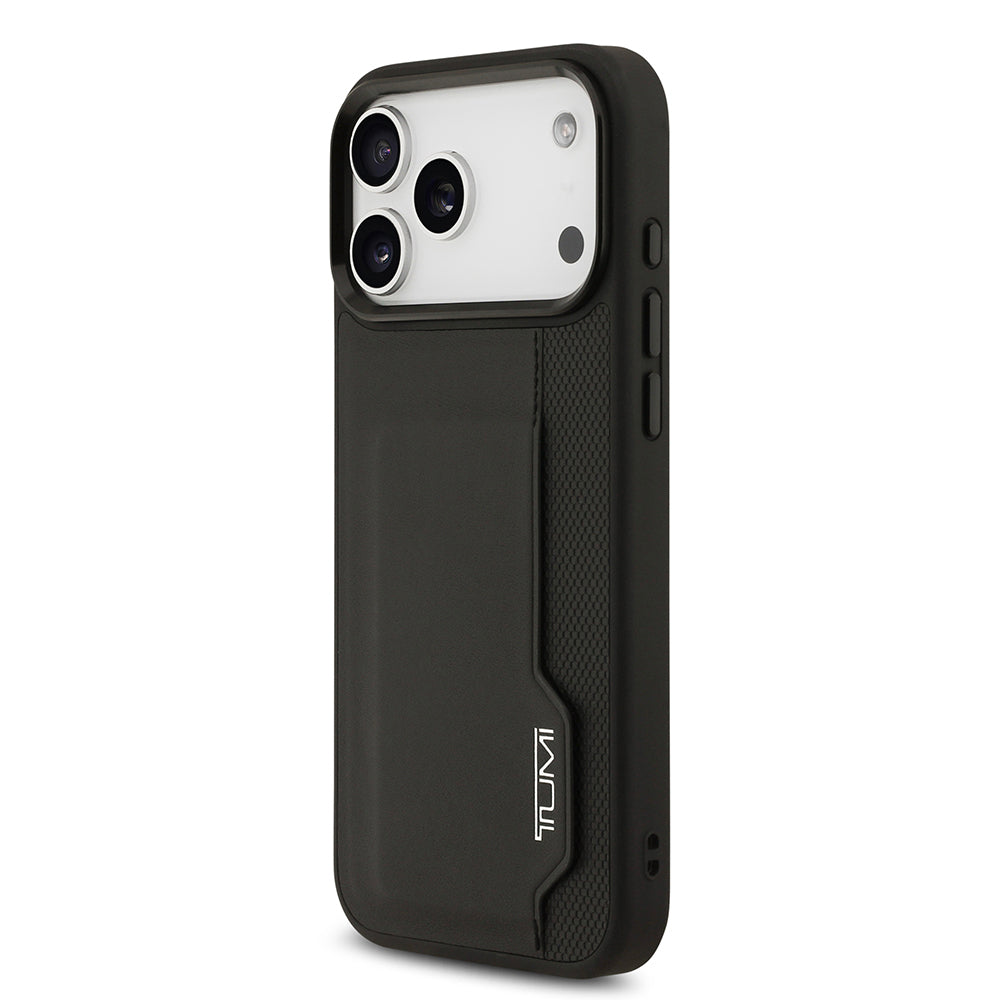 Apple iPhone 17 Pro Max Kılıf TUMI Orjinal Lisanslı Deri Dikey Kartlıklı Kapak Siyah