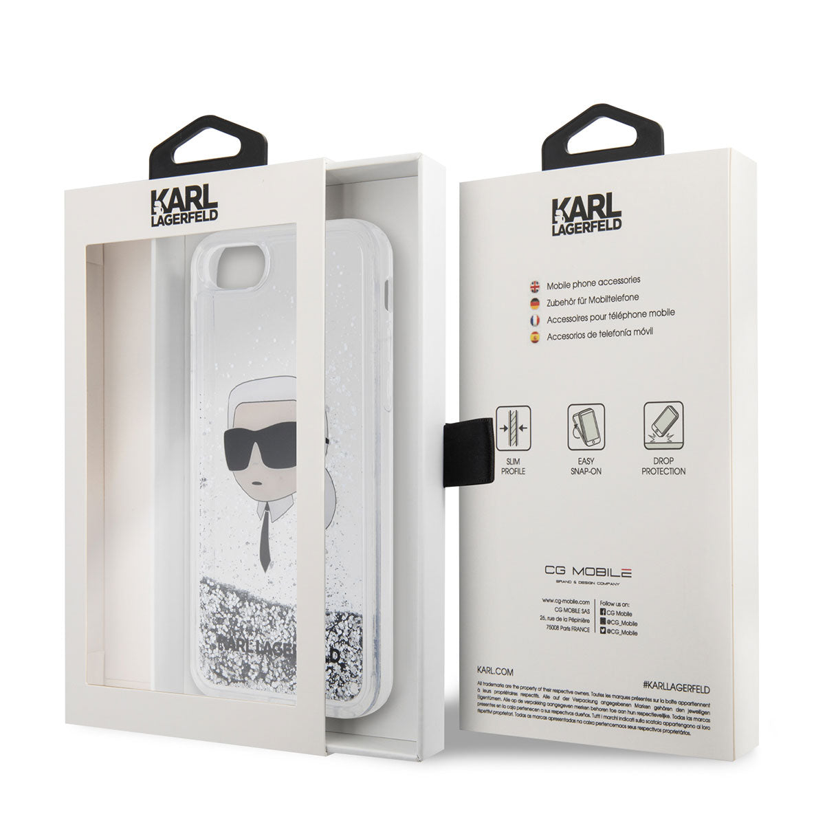 Apple iPhone 7 Kılıf Karl Lagerfeld Sıvılı Simli Karl Head Dizayn Kapak Gümüş