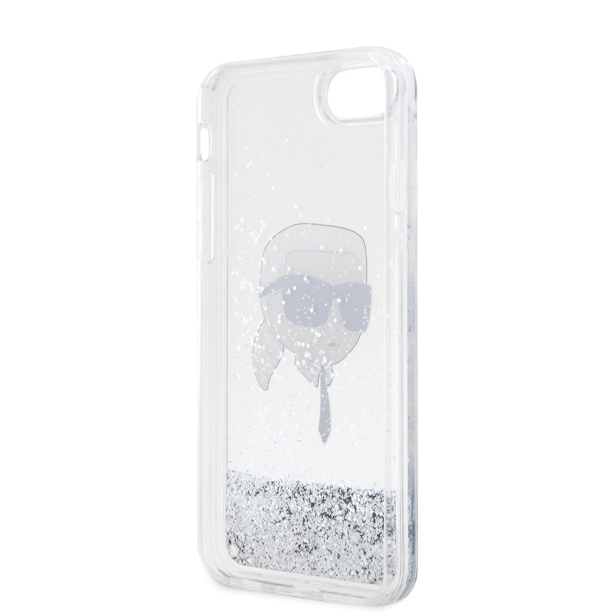 Apple iPhone SE 2020 Kılıf Karl Lagerfeld Sıvılı Simli Karl Head Dizayn Kapak Gümüş