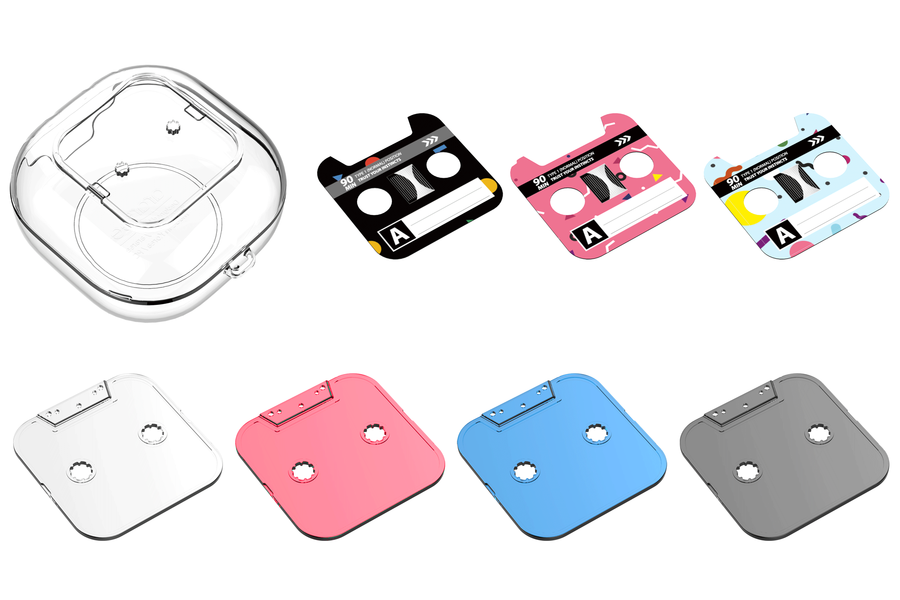 4 çeşit kaset rengi ve 3 çeşit sticker ile istediğiniz kombini yaparak kendinize özgün tasarımı elde edebilirsiniz