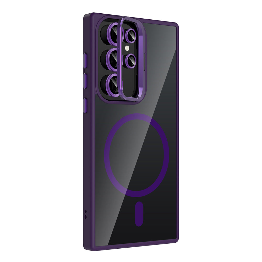 Galaxy S22 Ultra Kılıf Standlı ve Kamera Lens Hediyeli M-Safe Şarj Özellikli Zore Etro Kapak Derin Mor