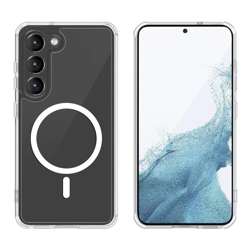 Galaxy S23 Kılıf M-safe Şarj Özellikli Şeffaf Sert PC Zore Embos Kapak Renksiz