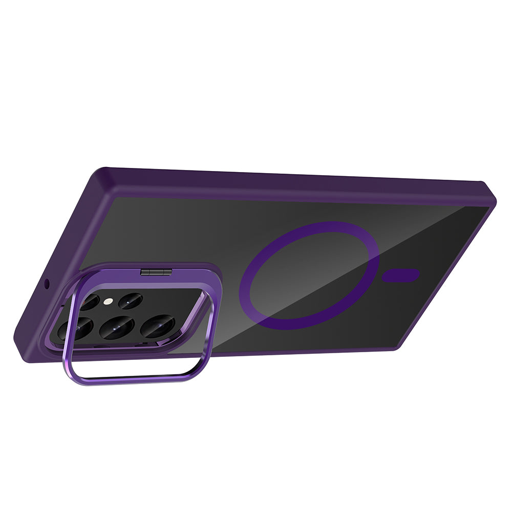Galaxy S23 Ultra Kılıf Standlı ve Kamera Lens Hediyeli M-Safe Şarj Özellikli Zore Etro Kapak