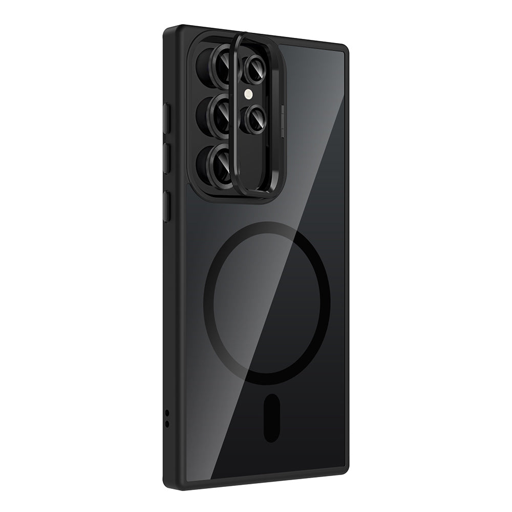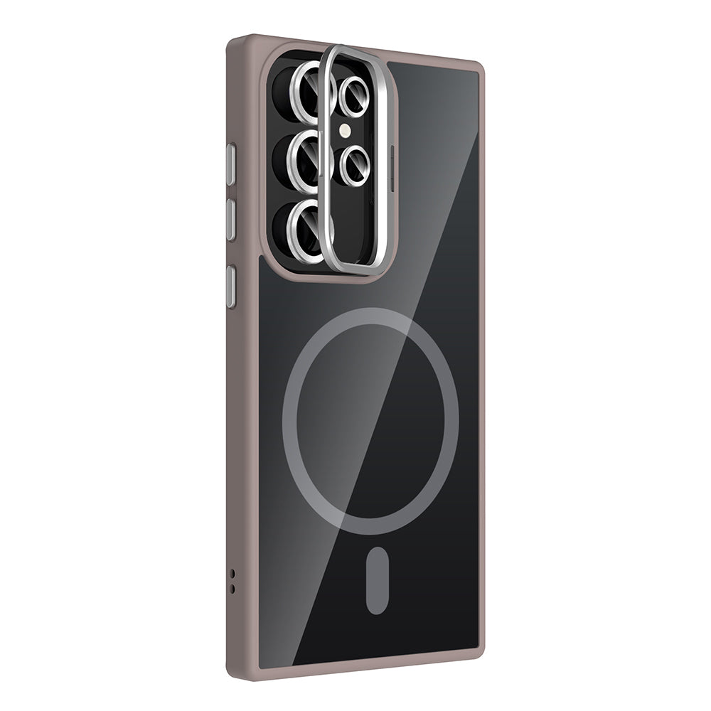 Galaxy S23 Ultra Kılıf Standlı ve Kamera Lens Hediyeli M-Safe Şarj Özellikli Zore Etro Kapak