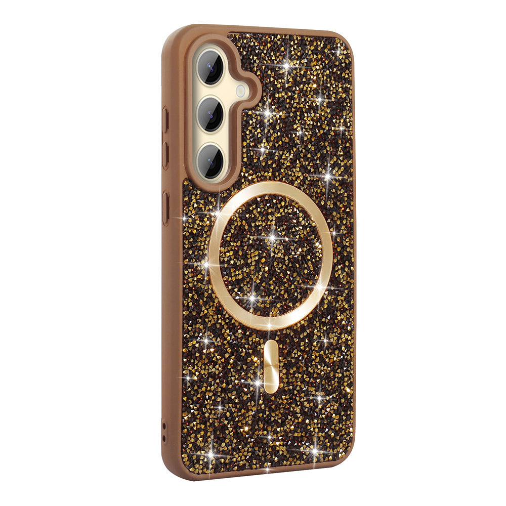 Galaxy S24 FE Kılıf Pırlanta Tasarımlı M-safe Şarj Özellikli Zore Mozaik Silikon Kapak Desert Titanyum