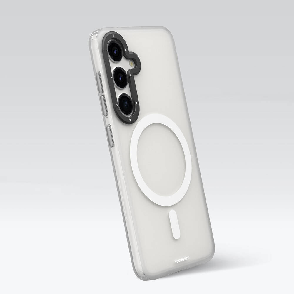 Galaxy S24 Plus Kılıf Magsafe Şarj Özellikli Youngkit Hidden Sand Serisi Kapak Beyaz