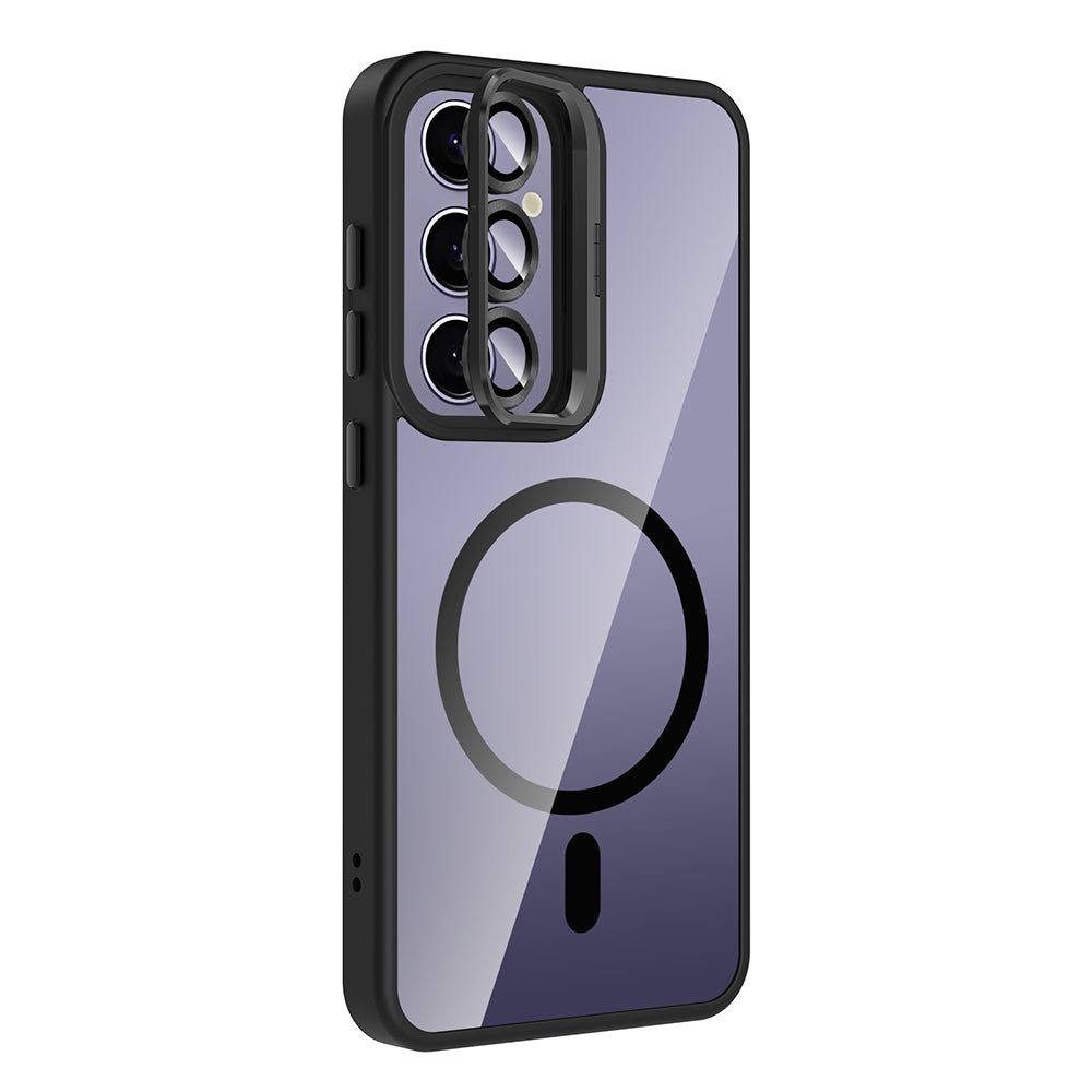Galaxy S24 Plus Kılıf Standlı ve Kamera Lens Hediyeli M-Safe Şarj Özellikli Zore Etro Kapak Siyah