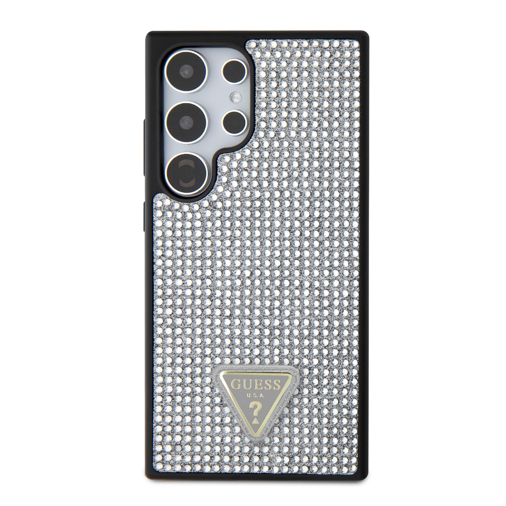 Galaxy S24 Ultra Kılıf Guess Orjinal Lisanslı Taşlı Arka Yüzey Üçgen Logolu Kapak Gümüş