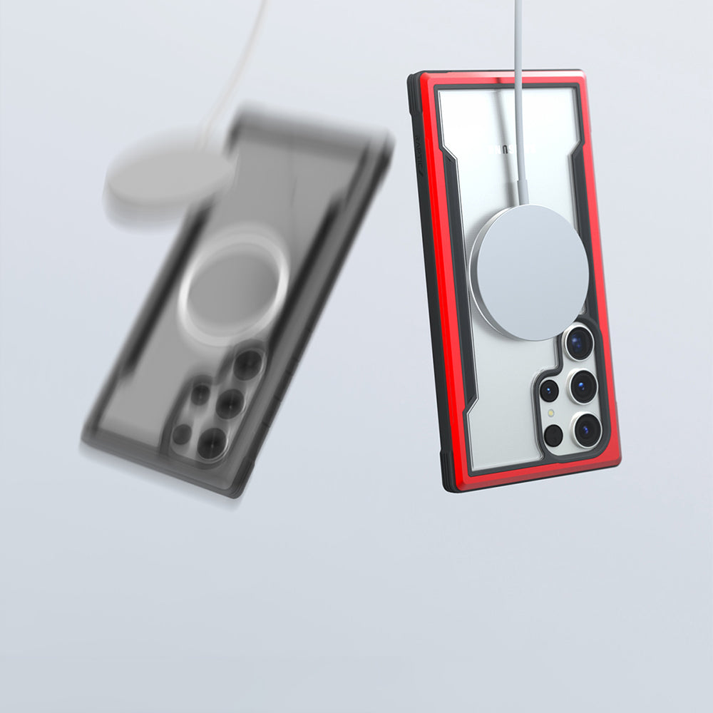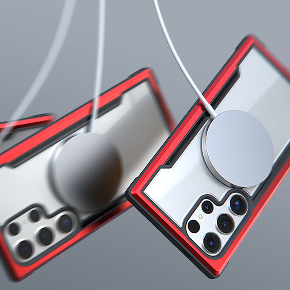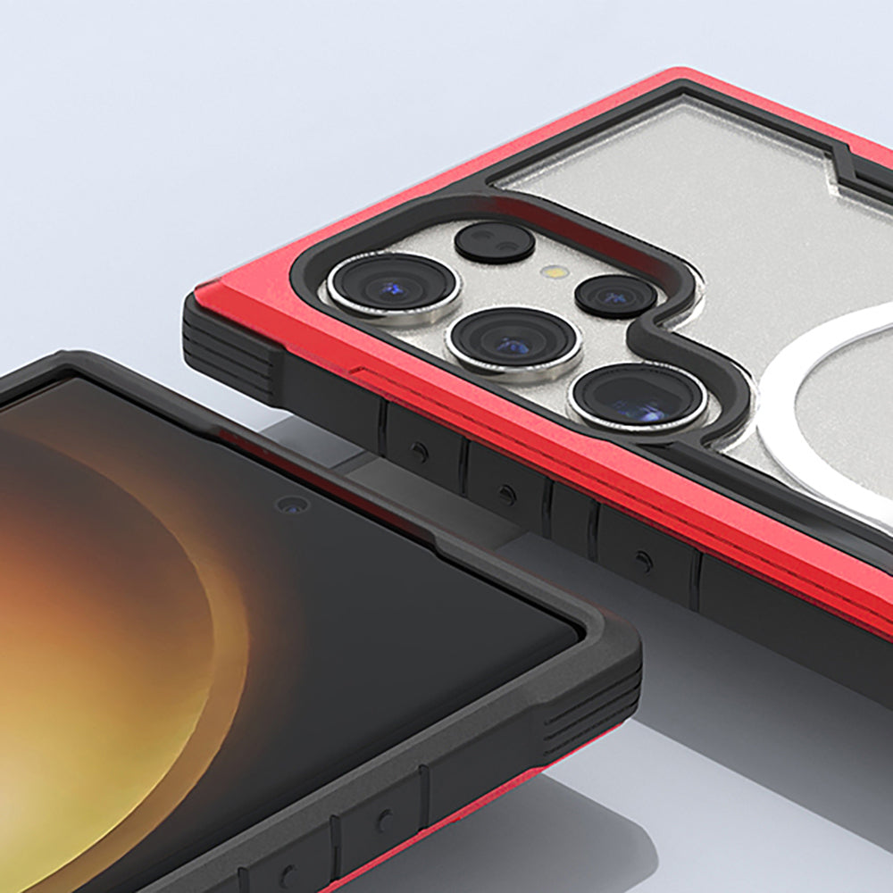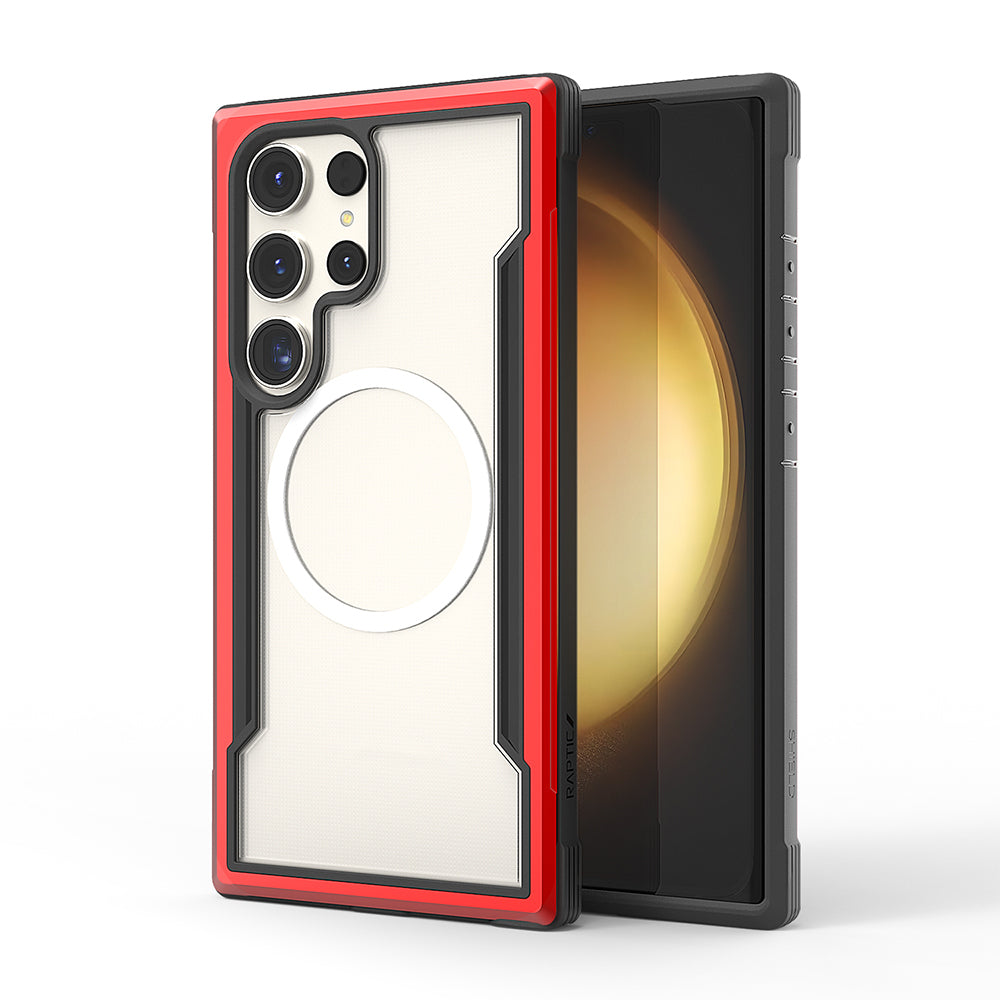 Galaxy S24 Ultra Kılıf M-safe Şarj Özellikli Airbagli Raptic Shield Serisi Şeffaf Arka Yüzey Kapak Kırmızı