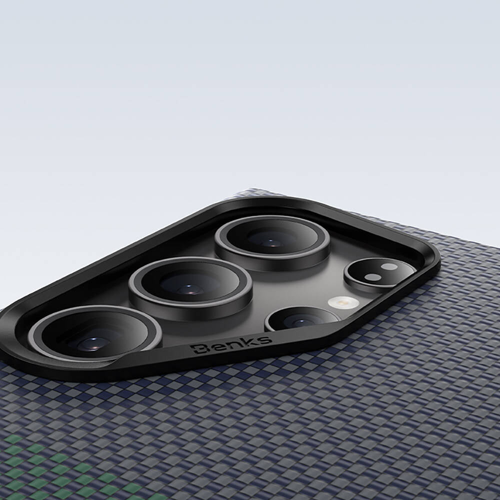 Galaxy S24 Ultra Kılıf Magsafe Şarj Özellikli Karbon Fiber Tasarımlı Benks Aurora ArmorAir Kevlar Kapak