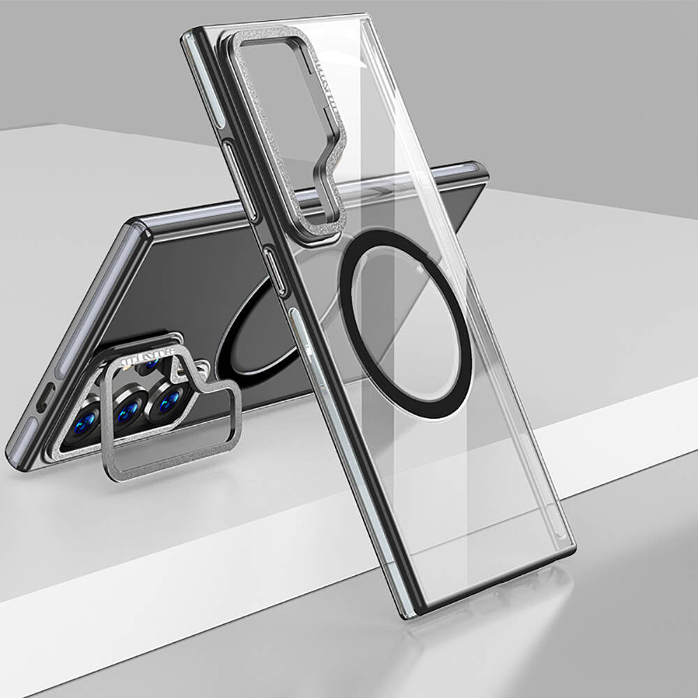Galaxy S24 Ultra Kılıf Magsafe Şarj Özellikli Wlons Standlı Efsane Kapak Siyah