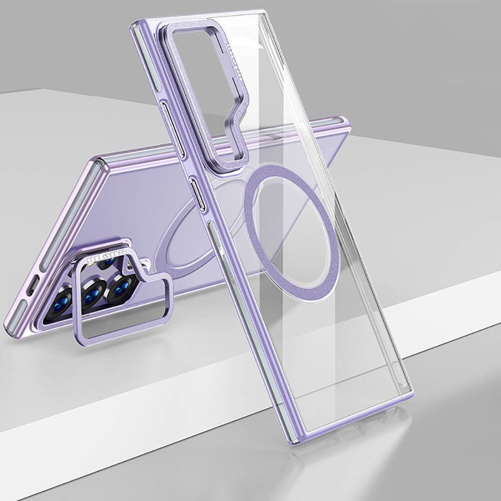 Galaxy S24 Ultra Kılıf Magsafe Şarj Özellikli Wlons Standlı Efsane Kapak Mor