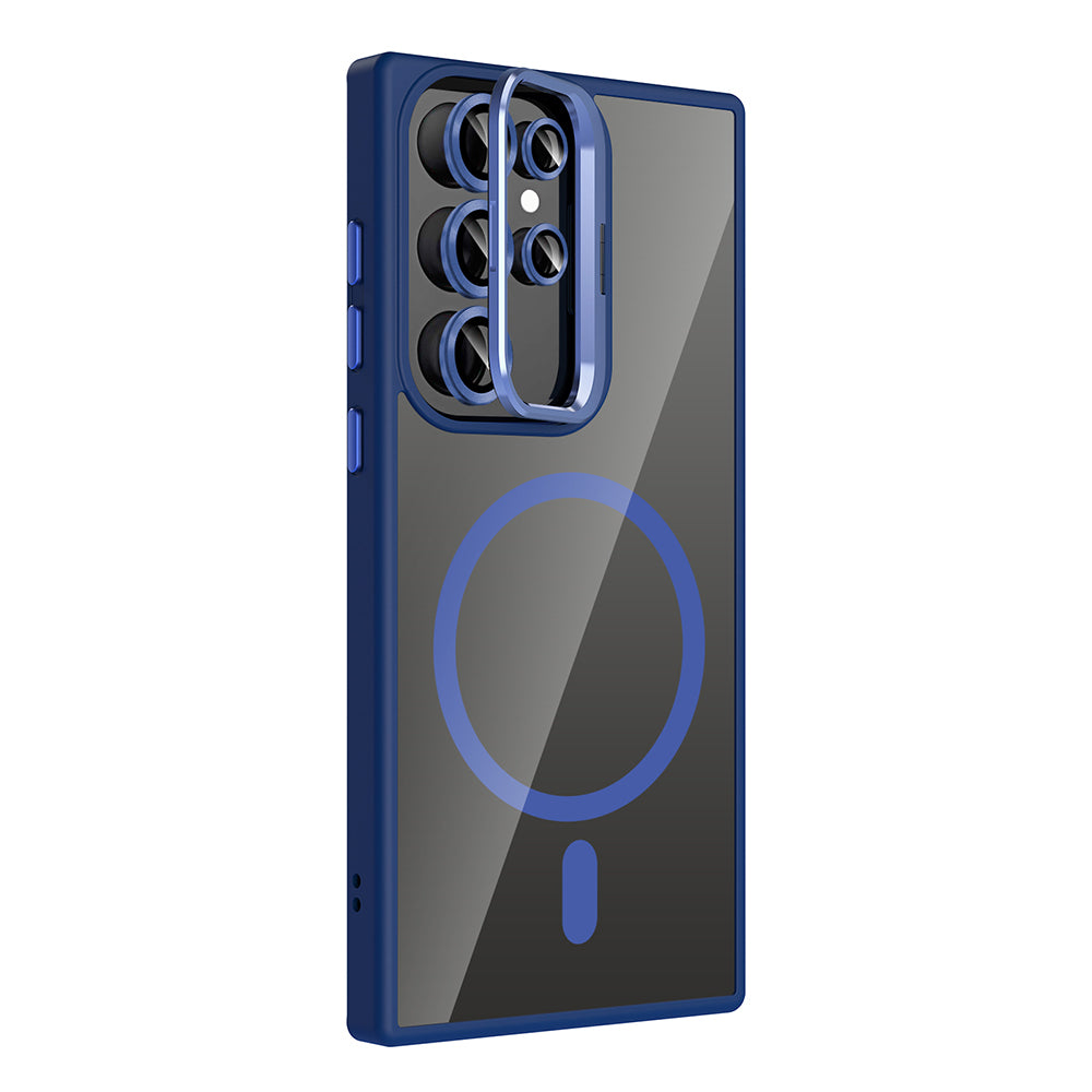 Galaxy S24 Ultra Kılıf Standlı ve Kamera Lens Hediyeli M-Safe Şarj Özellikli Zore Etro Kapak