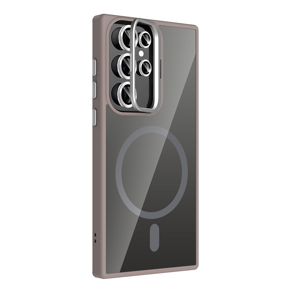 Galaxy S24 Ultra Kılıf Standlı ve Kamera Lens Hediyeli M-Safe Şarj Özellikli Zore Etro Kapak Desert Titanyum