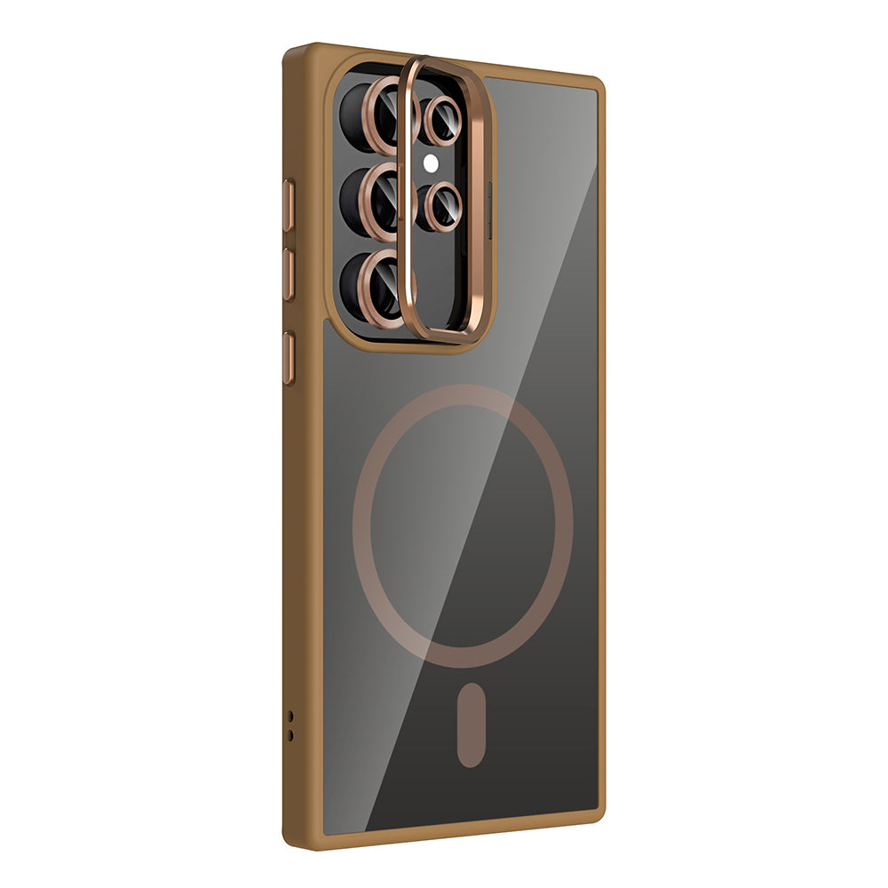 Galaxy S24 Ultra Kılıf Standlı ve Kamera Lens Hediyeli M-Safe Şarj Özellikli Zore Etro Kapak