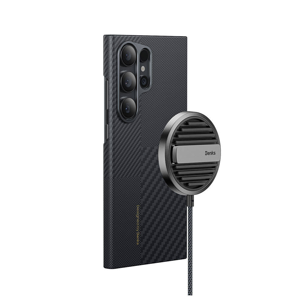 Galaxy S24 Ultra Magsafe Şarj Özellikli Karbon Fiber Benks Montage ArmorAir Kevlar Kapak Siyah
