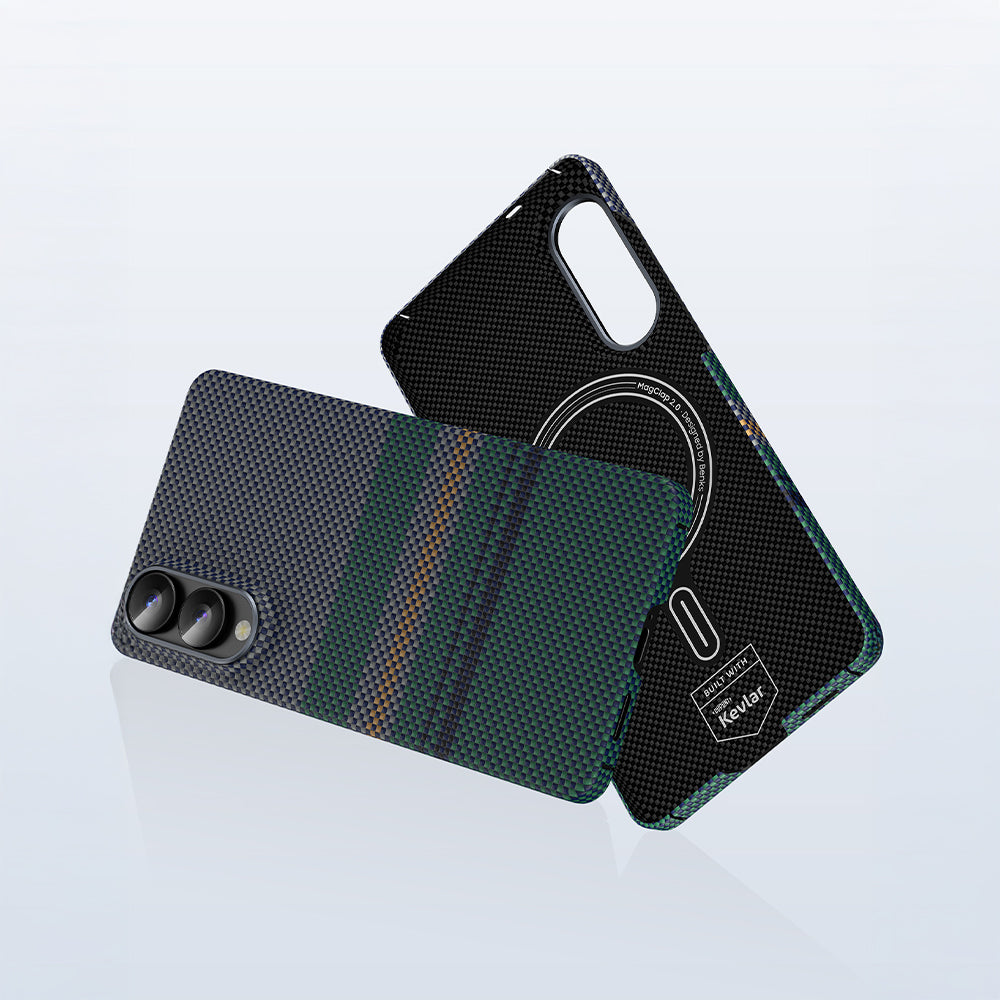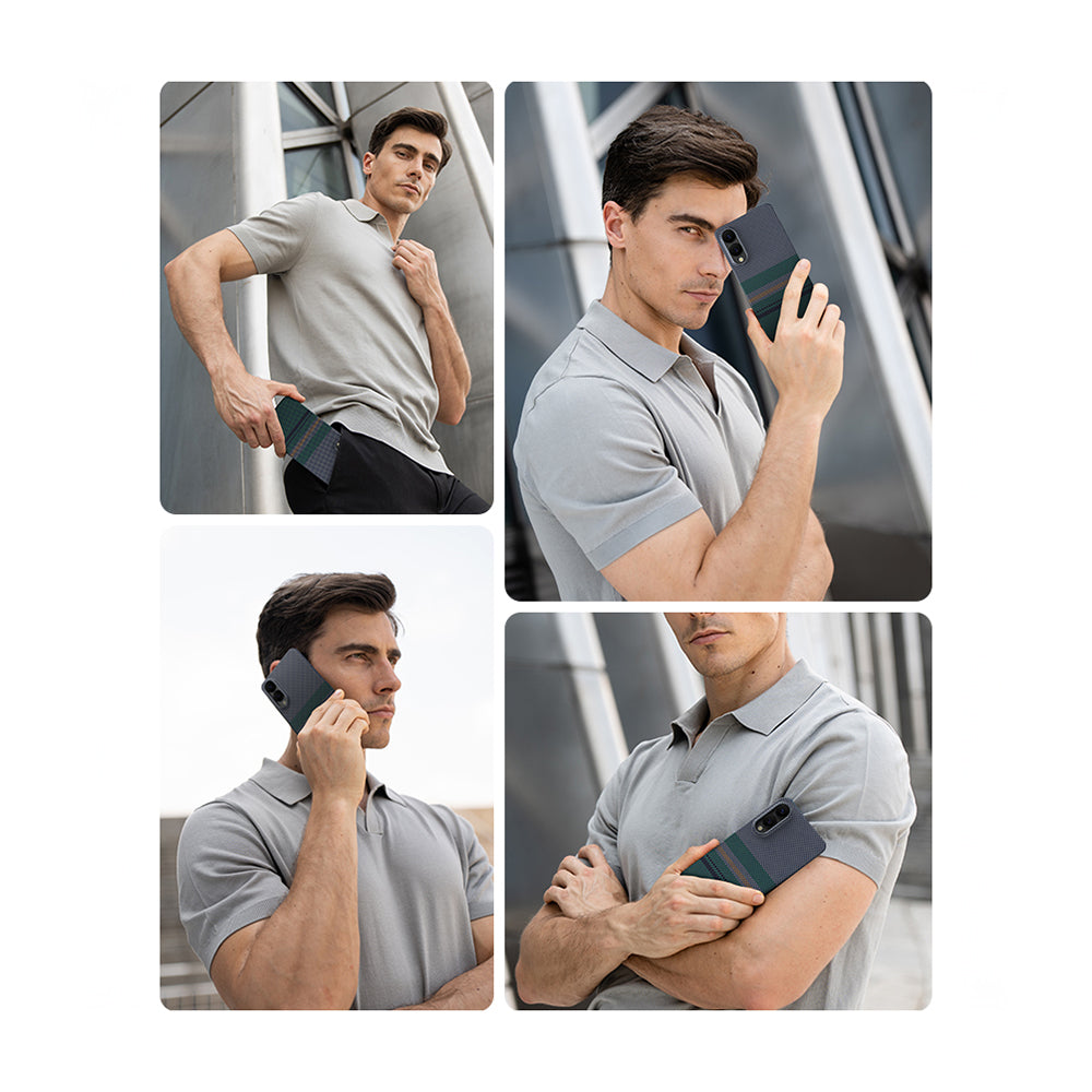 Galaxy S25 Edge Kılıf M-safe Şarj Özellikli Karbon Fiber Tasarımlı Benks Aurora ArmorAir Kevlar Kapak Yeşil