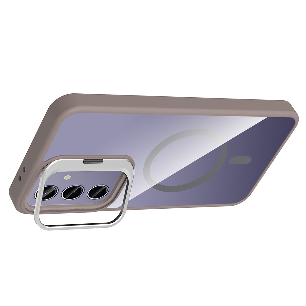 Galaxy S25 Plus Kılıf Standlı ve Kamera Lens Hediyeli M-Safe Şarj Özellikli Zore Etro Kapak Gri