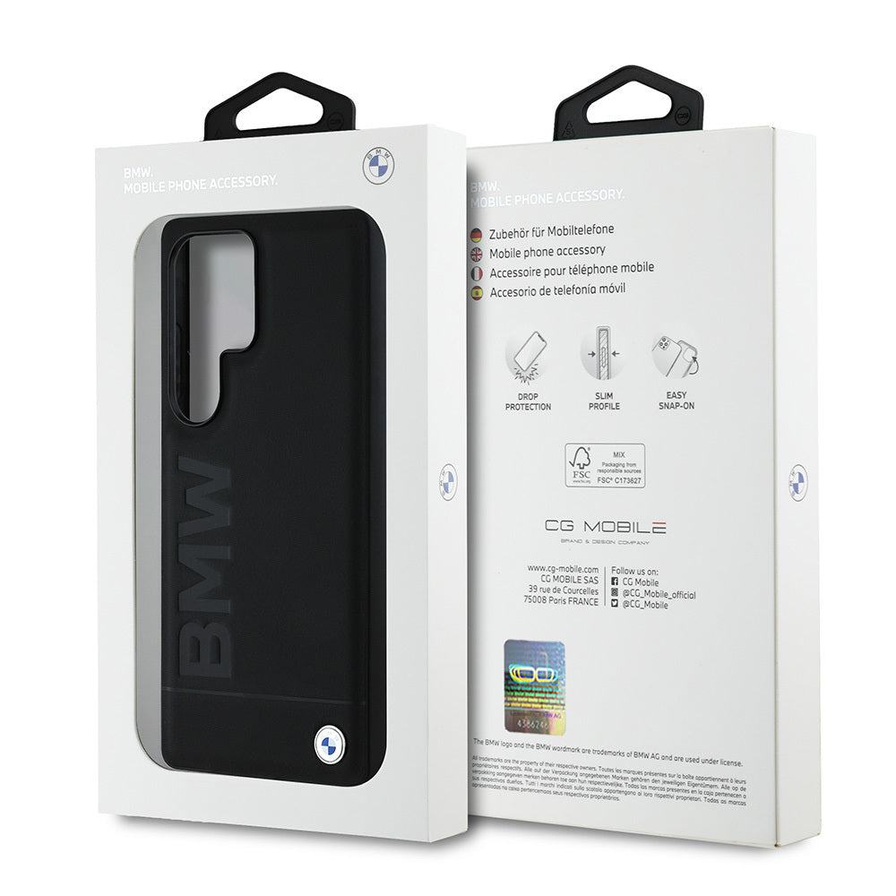 Galaxy S25 Ultra Kılıf BMW Orjinal Lisanslı M-safe Şarj Özellikli Sıcak Damga Logolu Deri Kapak Siyah