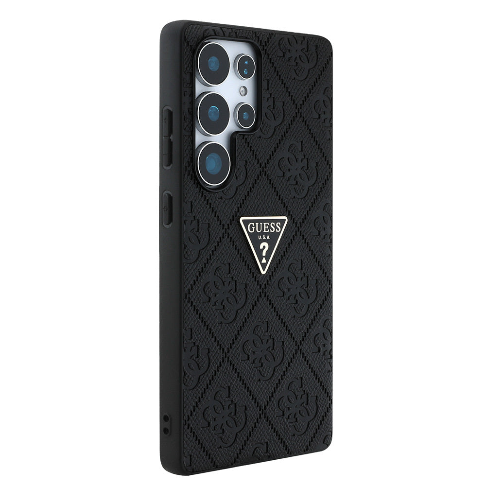Galaxy S25 Ultra Kılıf Guess Orjinal Lisanslı 4G Desenli Sıcak Damgalı Üçgen Logolu Kapak Siyah