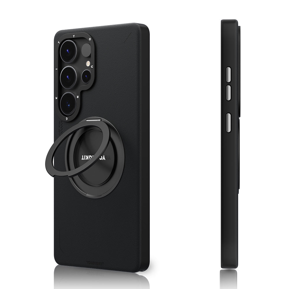 Galaxy S25 Ultra Kılıf Magsafe Şarj Özellikli 360° Standlı Basit Mat Deri Desenli Youngkit Tech Leather Serisi Kapak