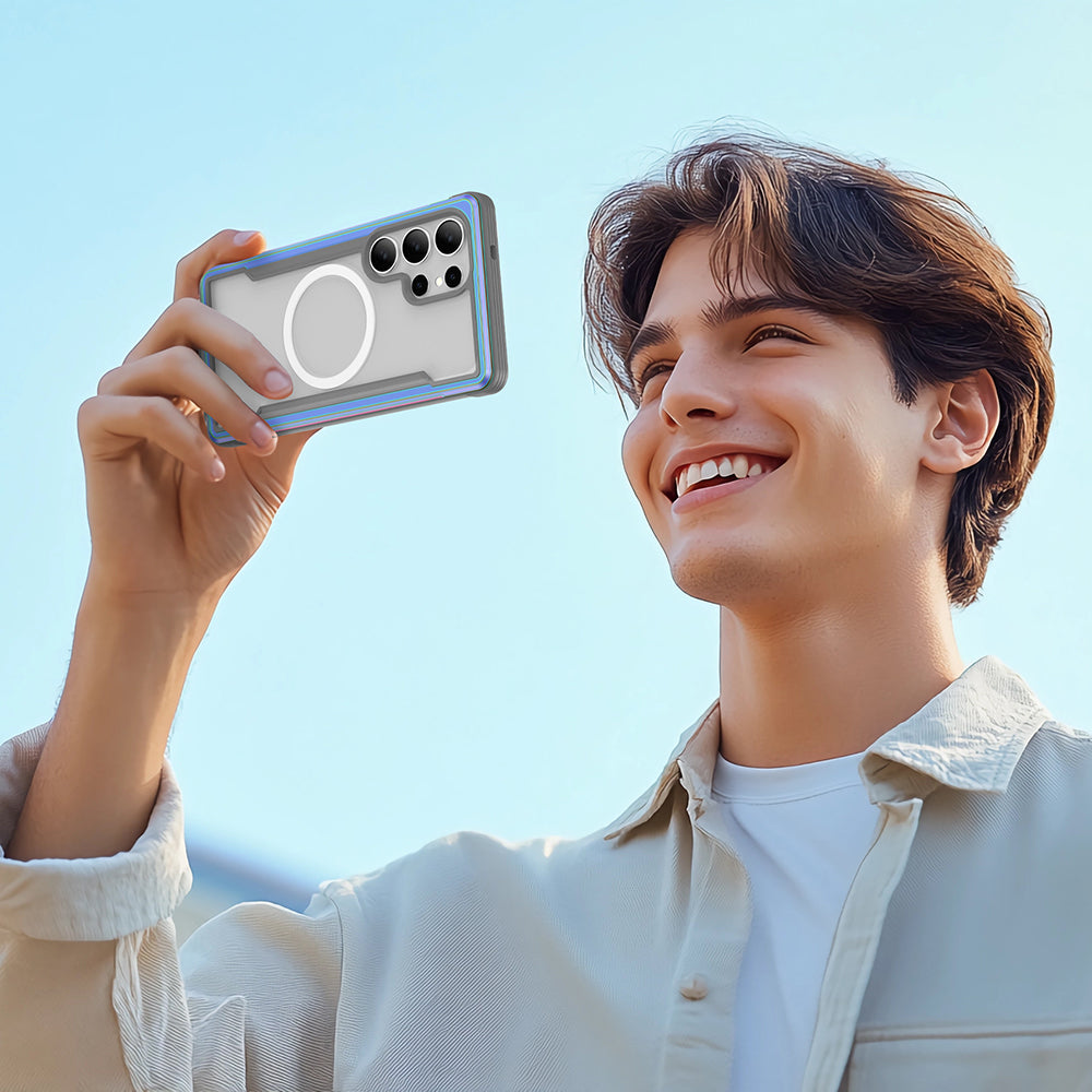 Galaxy S25 Ultra Kılıf M-safe Şarj Özellikli Airbagli Raptic Shield Serisi Şeffaf Arka Yüzey Kapak Colorful